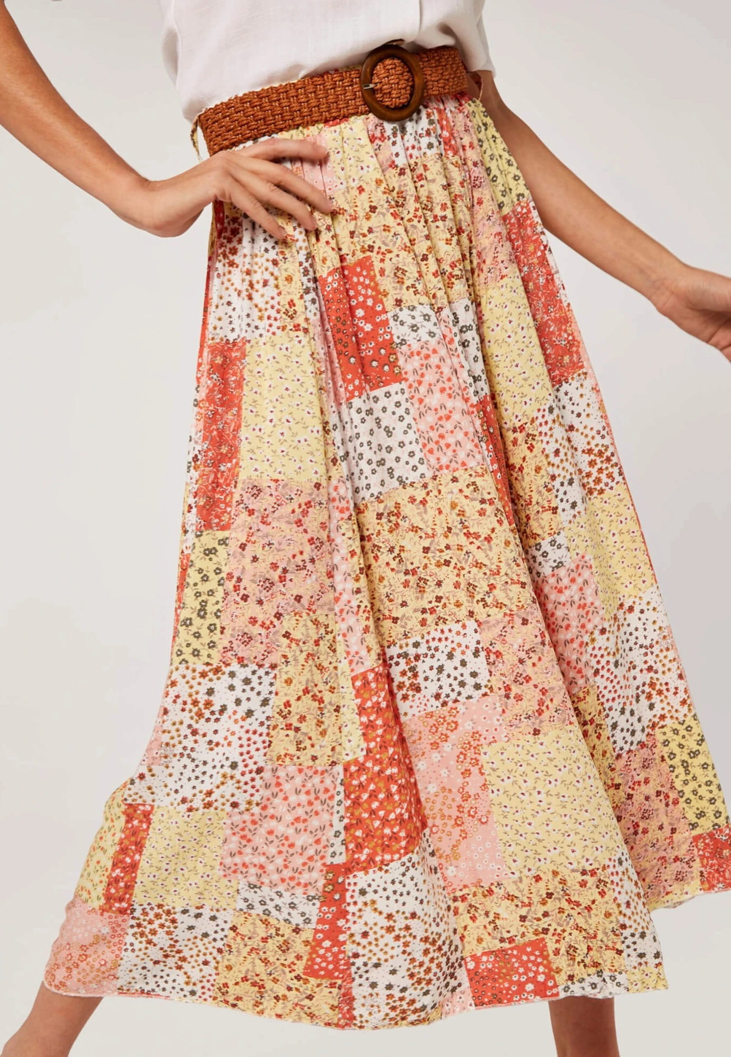 Apricot Ditsy Fusion Crinkle – A-Lijn Rok – Orange