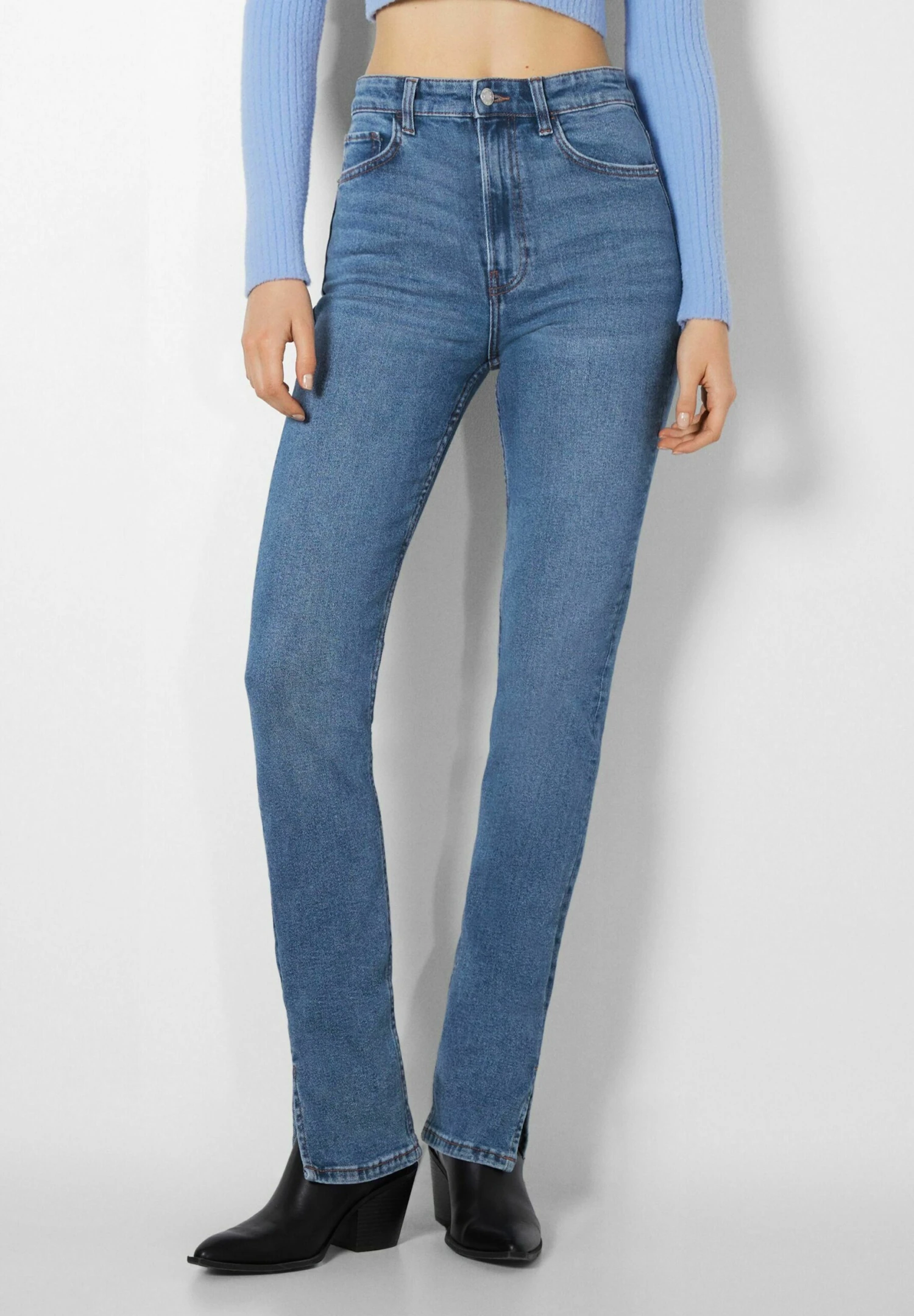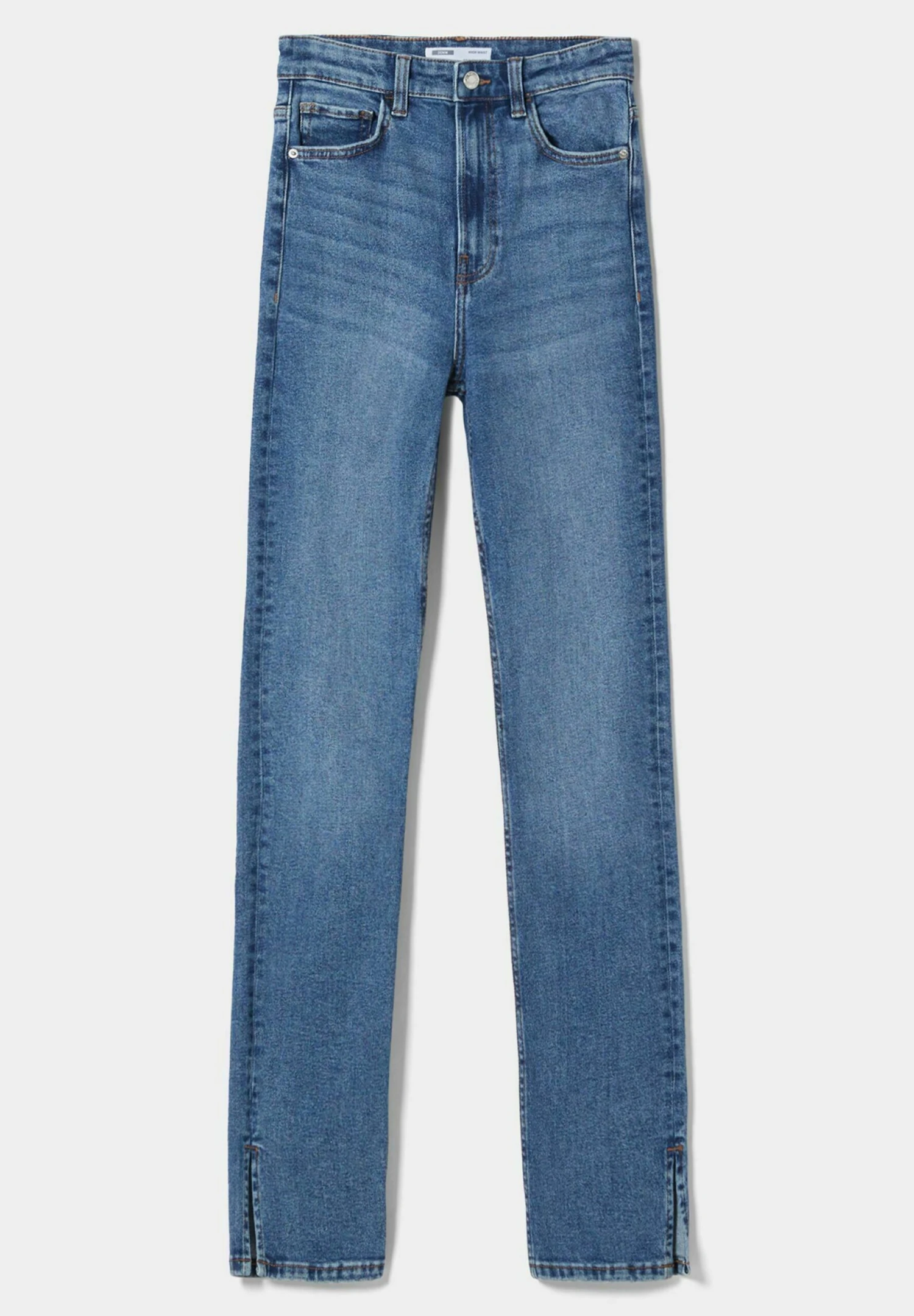 BERSHKA High-Waist Split-Hem – Slim Fit Jeans – Dark Blue