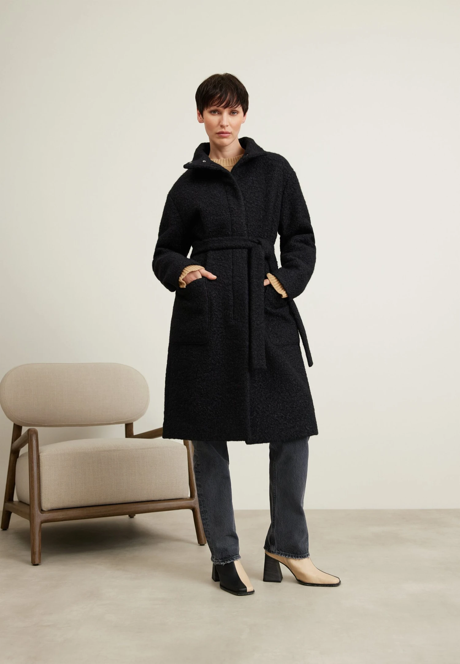 | Details | Verdekte rits, met ceintuur |