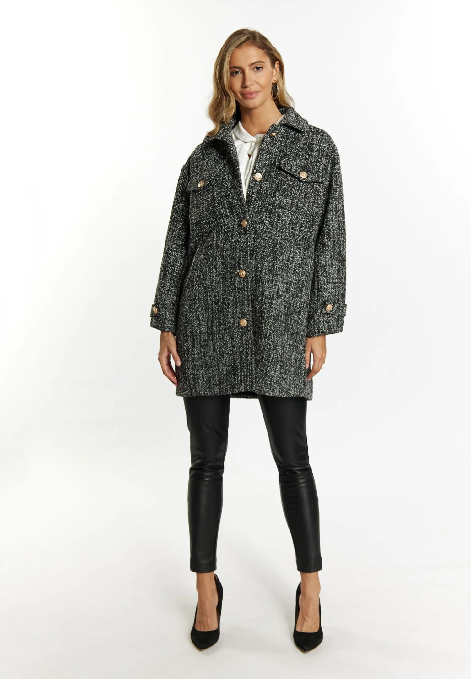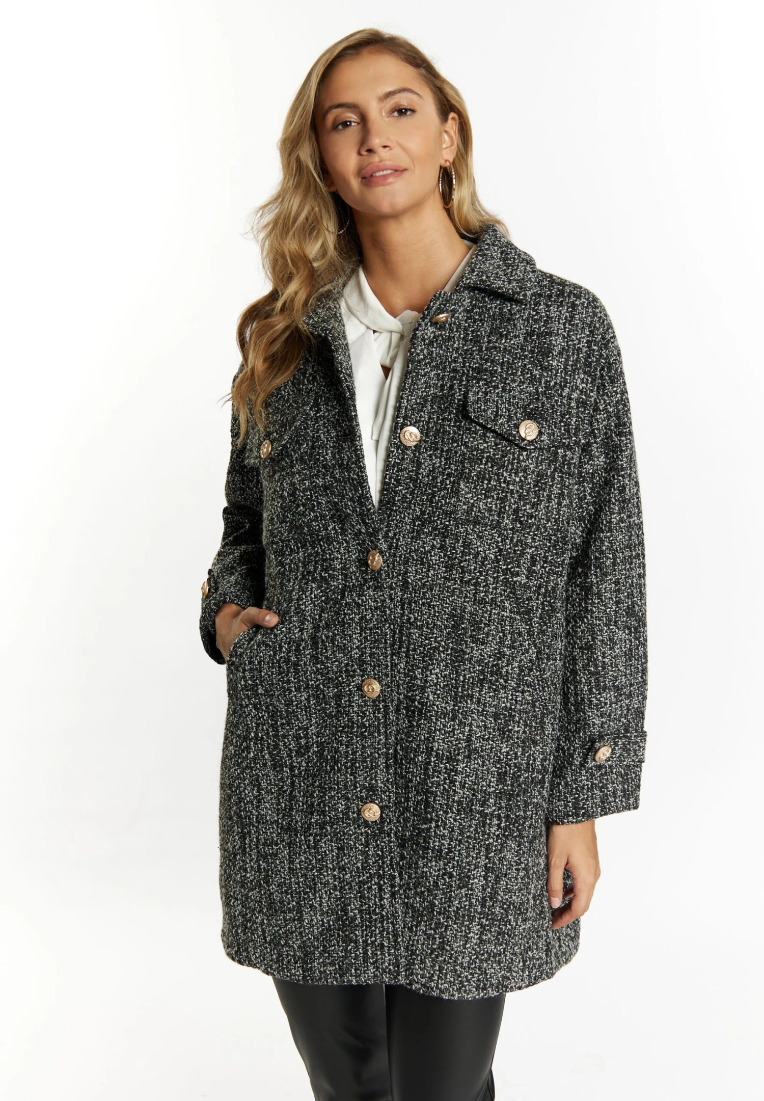 Faina Tuxe – Mantel – Schwarz Weiss Kariert