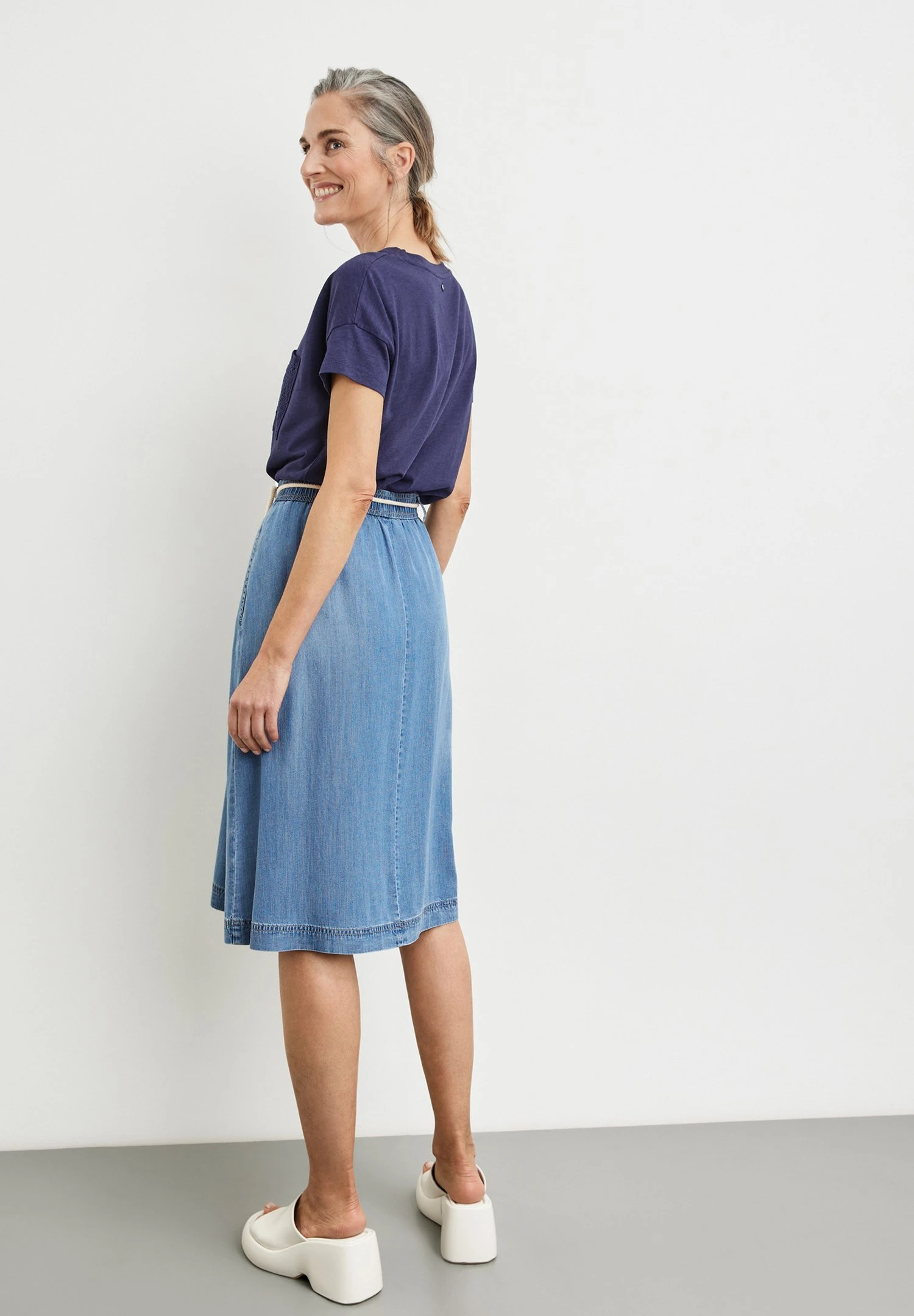 Gerry Weber Weit AusgestellterMit Kordelban – A-Lijn Rok – Blau Denim Mit Use