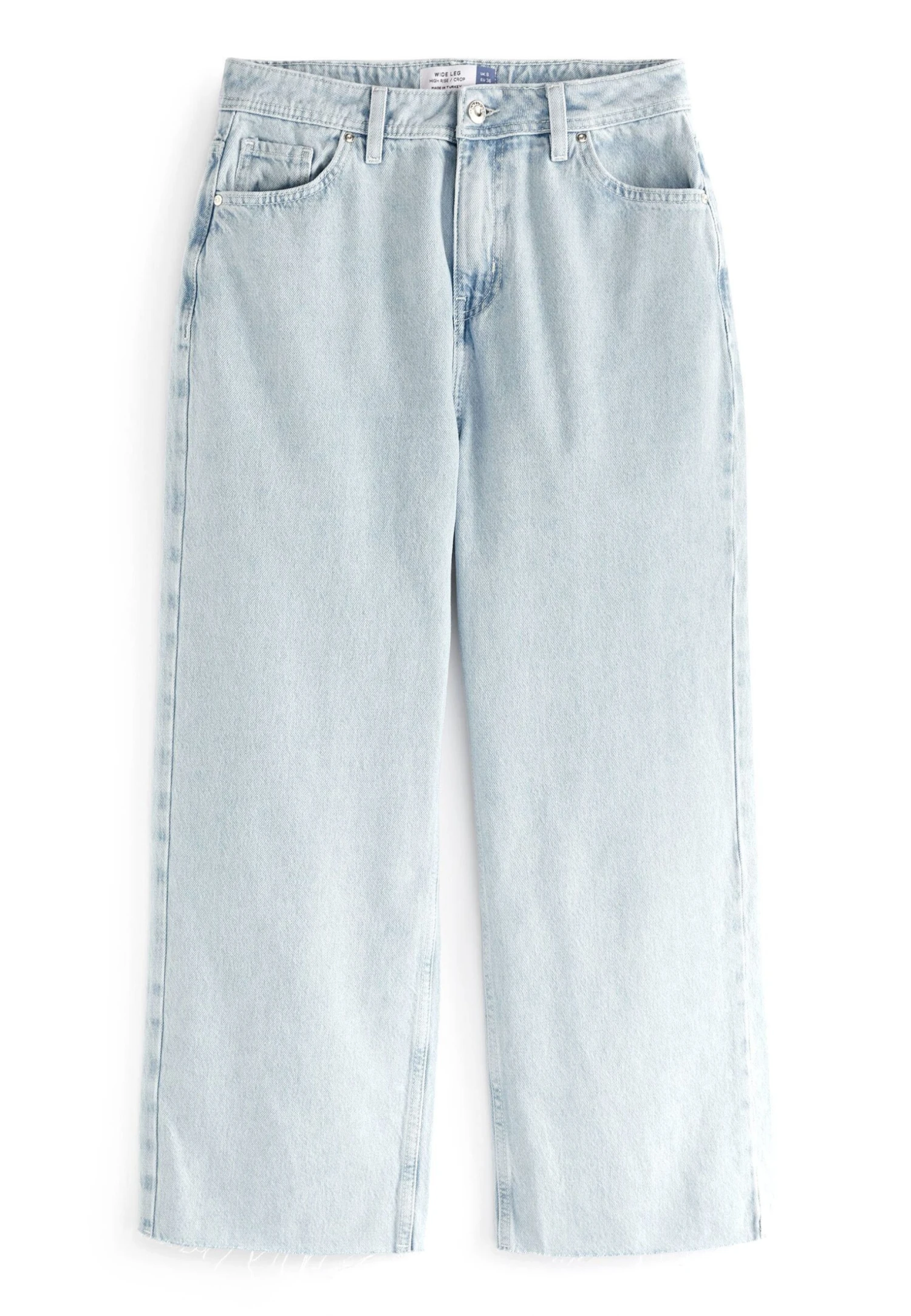 Next Raw Hem Cropped Wide Leg Standard – Flared Jeans – Denim Bleach Wash
