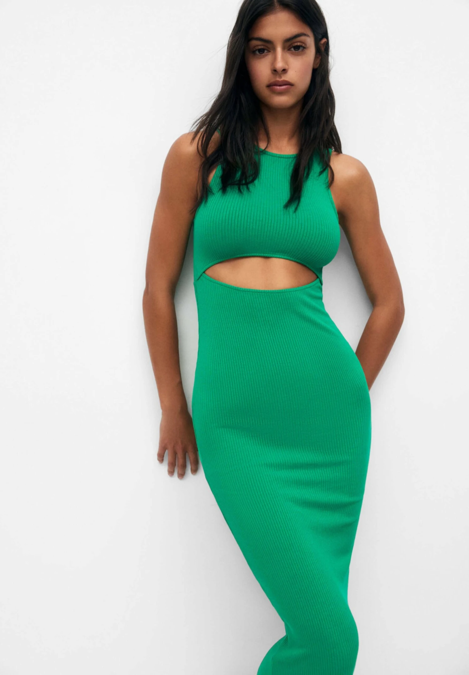 PULL & BEAR Long Cut Out – Etui-Jurk – Green